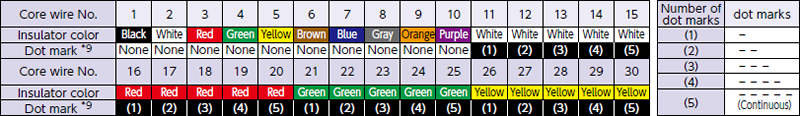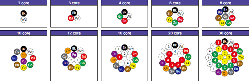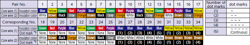| Insulator identification | Depends on the core wire identification and configuration of core wires (pairs) |