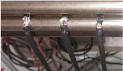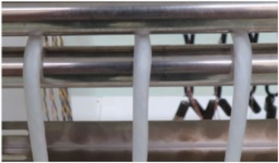 We perform pivoting/bending tests on a sample that would be used in a moving part of a food manufacturing machine after immersion in a disinfectant solution (e.g.,ethanol). Cracks were observed in general movable cables (jacket: oil-resistant PVC), but not in OH Cables (jacket: special elastomer material).