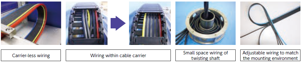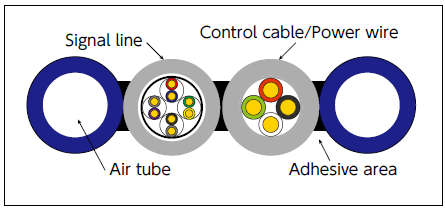 These are customized cables in which cables for moving parts and air tubes are bonded in parallel, offering excellent sliding performance.